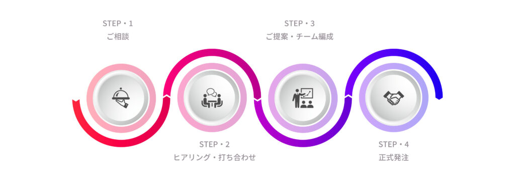 サイトの目的やターゲット、必要なページ数や機能を事前にヒアリングさせていただきます。ご希望のデザインや参考サイトがあれば、そちらも共有いただけるとスムーズです。